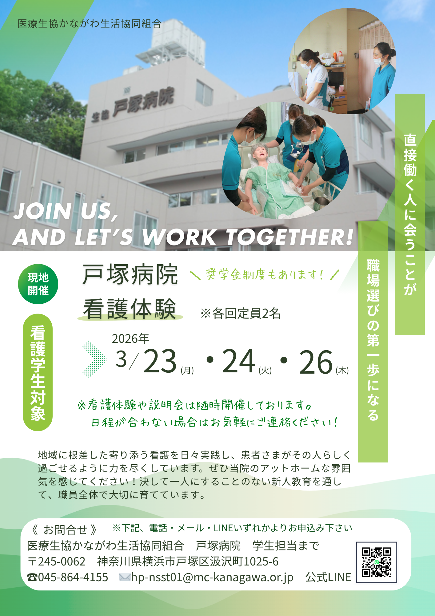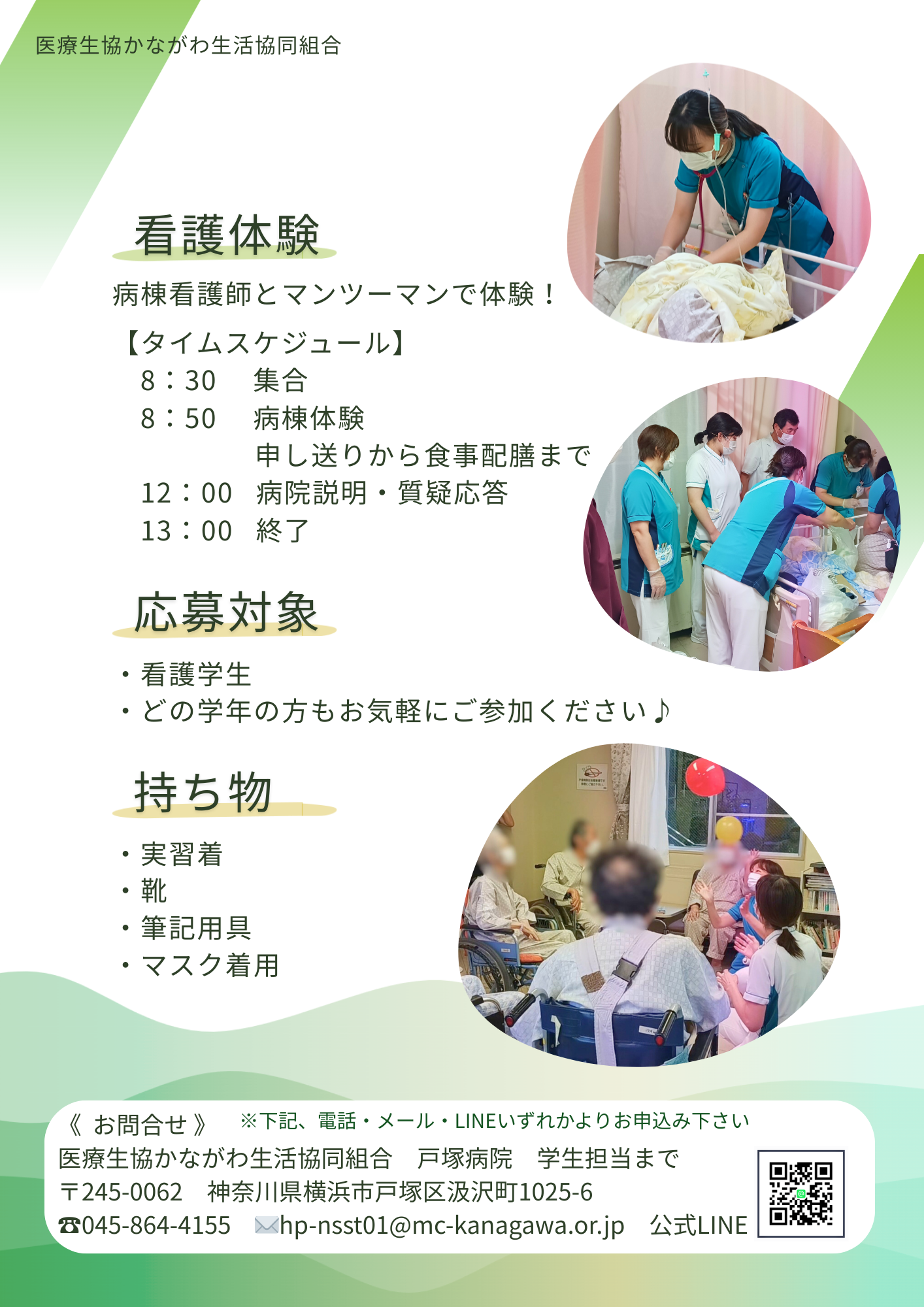 医療生協かながわ生活協同組合 戸塚病院 学生担当まで