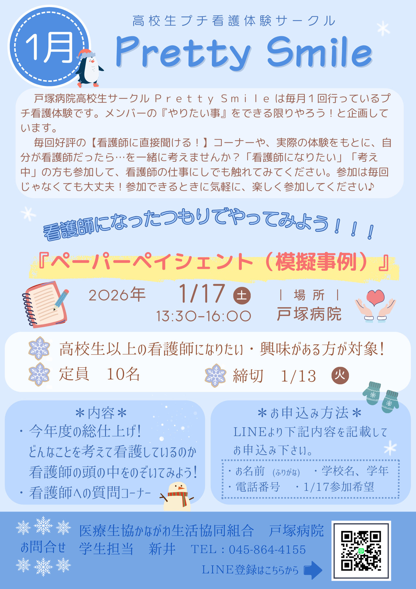 【1月企画】☆高校生・看護学生☆プチ看護体験サークル~プリティ・スマイル~